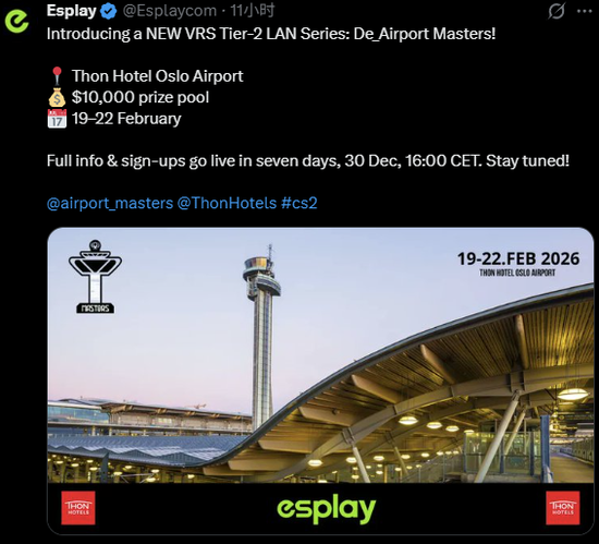 Esplay宣布推出一项新的VRS T2级别线下赛事:De_Airport大师赛。