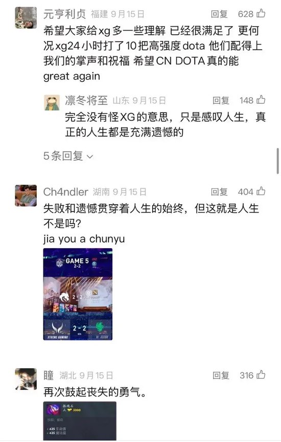 除了难过,更多的却是鼓励与共情。大家不再急于甩锅,很多人也不再执着于“为什么又是2:3”,而是学会了相互安慰、彼此打气。这样的氛围,多少让人有些意外,这不像CNDOTA的环境。