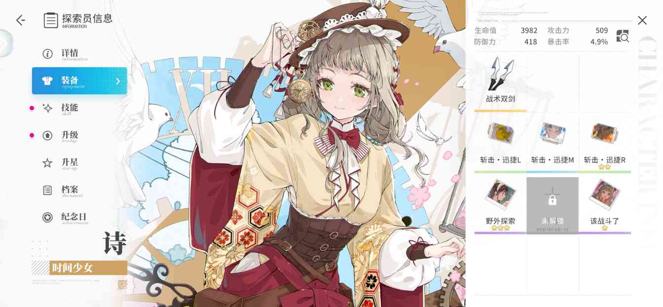 一卡槽位:时间之轮(有专武优先专武)/时间阶梯