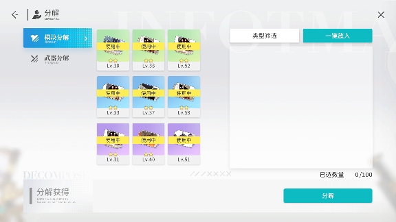 11.在主页点击分解,可以分解装备,目前的话,只要留下在用角色的装备,防具留下攻击力加成的就行了。因为账号35级之后,可以解锁79级装备,目前的装备都是过渡,都分解掉就好了