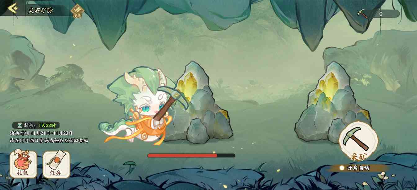 采矿随机获得天地品灵石或灵石宝箱,可以用来升级专武,推荐用元宝买次数。