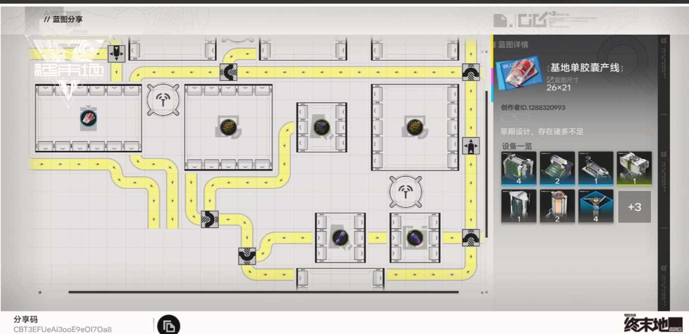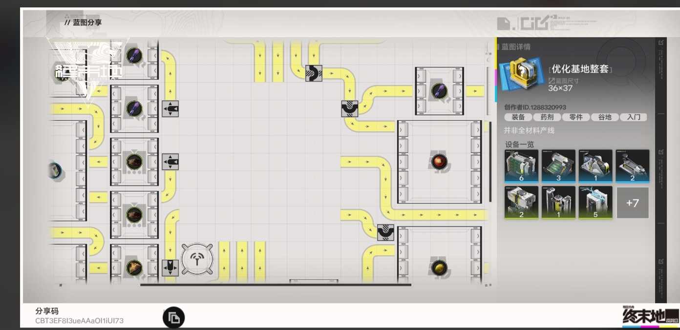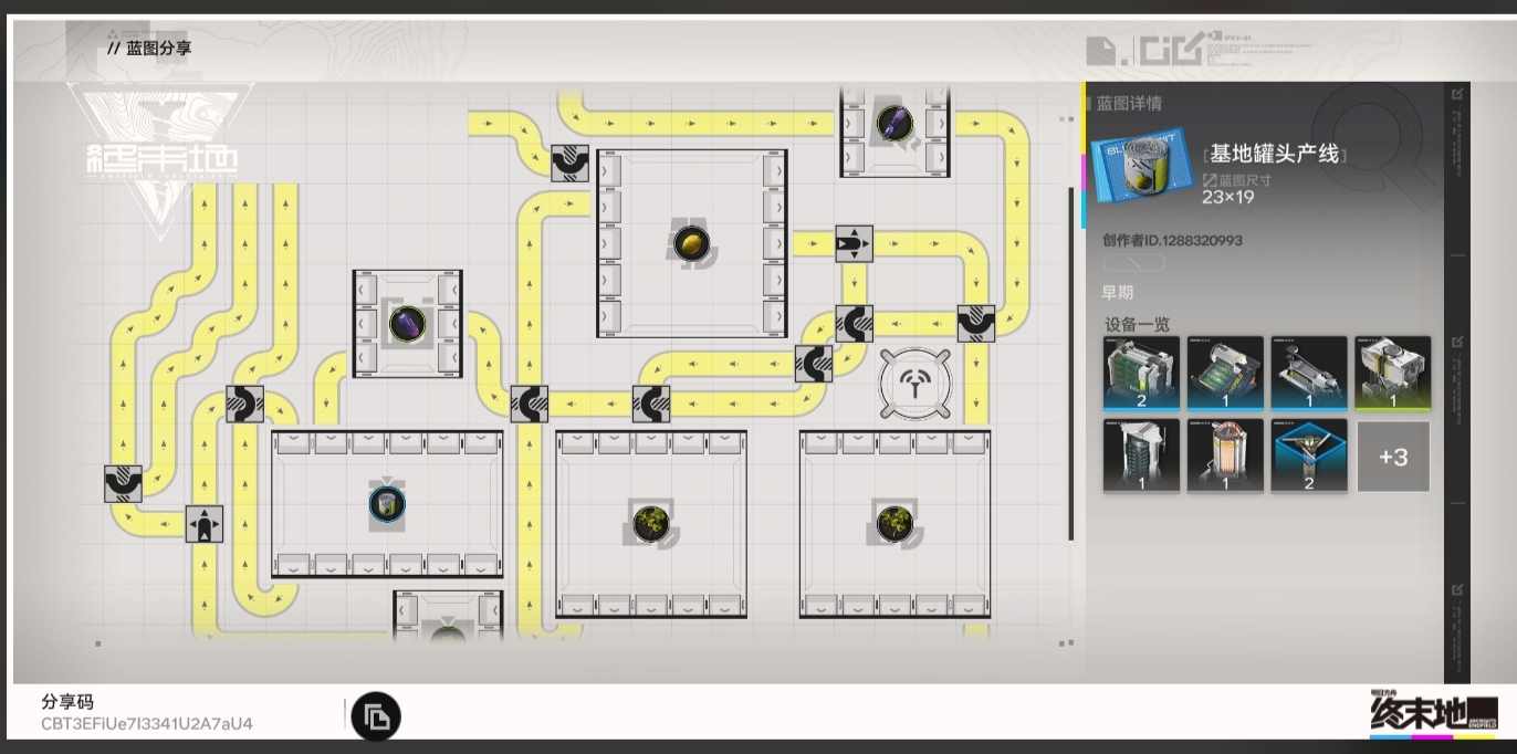 明日方舟:终末地来抄作业!蓝图分享!初期基地生产线布局推荐!如下:
