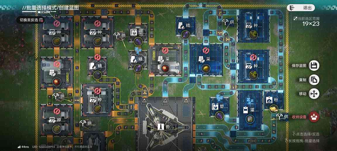 初次启动需要手动填装采种机,并检查传送带链接是否正确,终末地的蓝图系统有点问题,选择保存蓝图的时候可以选择超出范围的建筑,但是放置的时候会直接卡住,导致需要管理员手动摆放下供电桩提供电力。