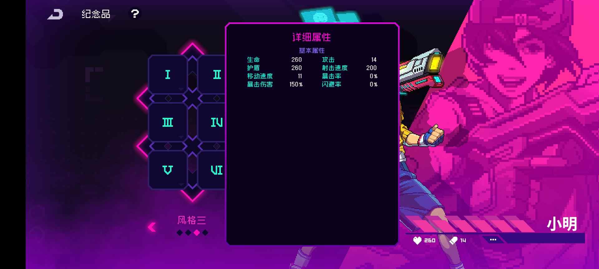 首先在不携带任何纪念品的情况下进行测试。(可以看到为什么小明热度较低,在满级的情况下基础攻击力只有14点。)