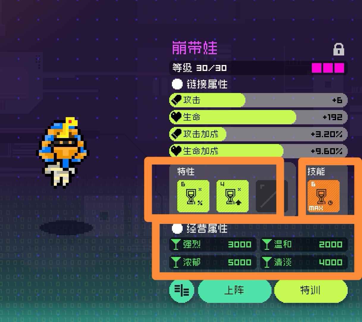 首先是对于最终目标,十级调饮八只8+8特性和攻略里12只6+6特性对比,相同数量的绷带娃情况下,八只的额外收益肯定比12只高,升级宠物的虚拟币开销也更少,难度稍难但那是最终目标,我们只需要退而求其次,达到十级店面九级调饮即可。