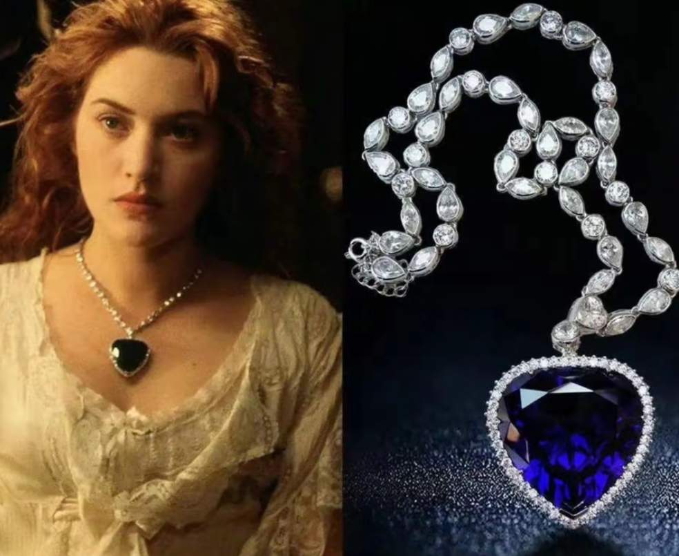 致敬:《泰坦尼克号》中女主所佩戴的著名项链。泰坦尼克号里海洋之心项链的原型,是著名的希望蓝钻,当时,电影剧组原本想向博物馆借出“希望蓝钻”用以拍摄电影,但由于其太过贵重,博物馆直接拒绝了,剧组只能使用坦桑石打造 了这颗“海洋之心”。