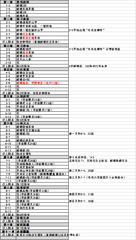 接下来是关卡的重要信息,已经列表,需要的时候可以拿出来查阅一番。