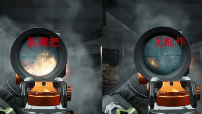 但我这里拿出截图大家就能清楚的发现,带上【兵锋新式握把】握把之后的开火视野晃动明显更小,所以它的效果其实是与“额外”系列词条相同的,是在属性面板以外以乘积方式的附加属性,单独这个配件效果或许微不足道叠加其他配件之后效果直接起飞。