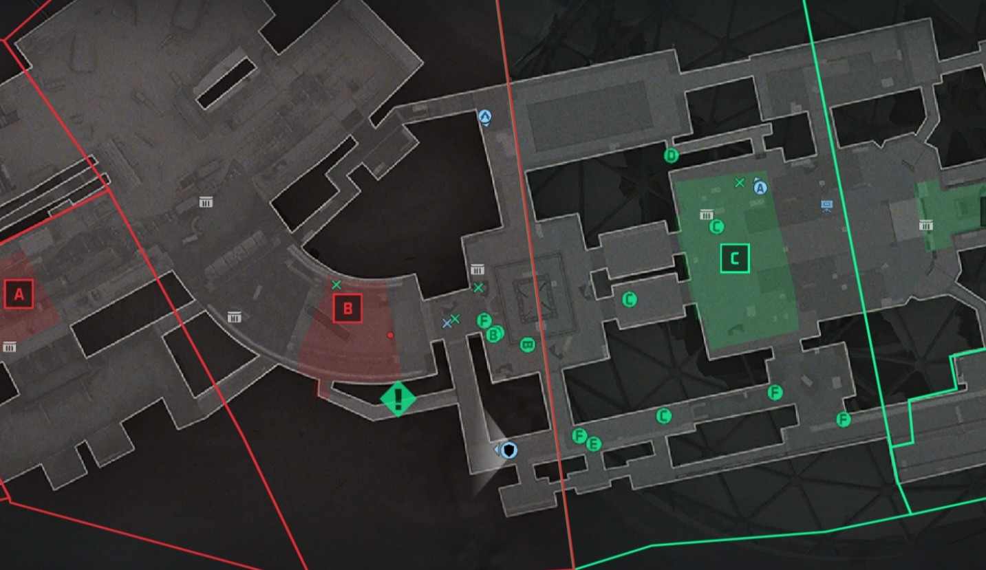 ③一次大招震到8个人。大招看情况长按或短按,长按次数多,短按触发快,要注意你大招会被打掉,同时人死了大招也会消失;一定要是<先锋占领>的贯穿地图,守方开局,在占领DC两个点后,第一时间跑到下图感叹号位置开大,基本一次性完成。
