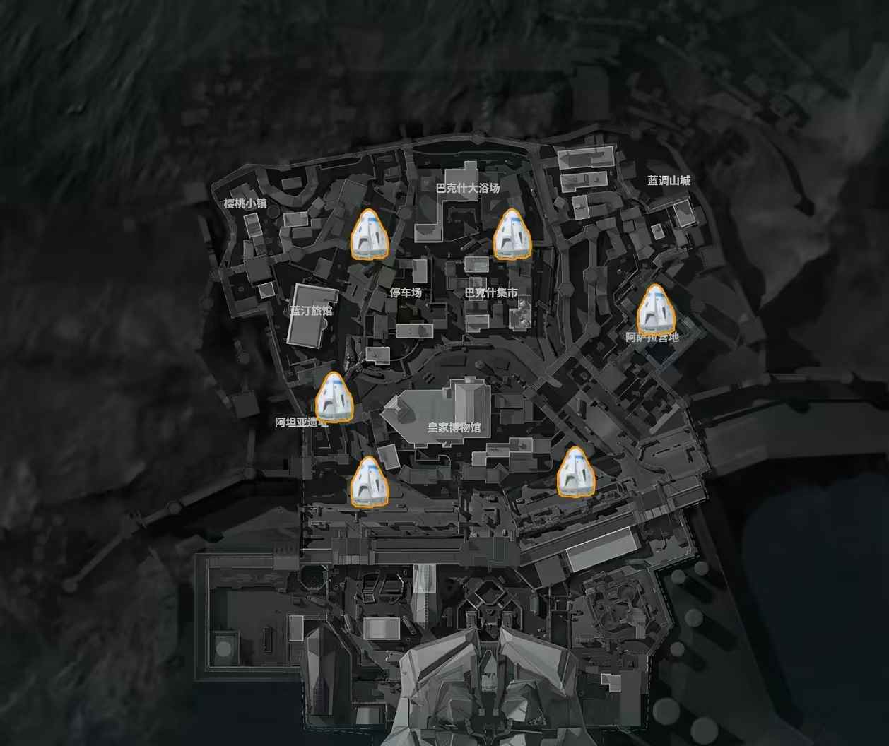 最后就是巴克什了,和大坝一样是六个降落点位,阿坦亚遗址和巴克什浴场范围各两个,另外两个点位在阿萨拉营地和皇家博物馆右下角一段距离处,搜索难度不是很大。这些点位是兔桑爆肝出来给大家的,希望大家多多点赞转发评论哦,本期内容就这么多,各位彦祖亦菲我们下期再见,爱你们(づ ̄3 ̄)づ╭❤~