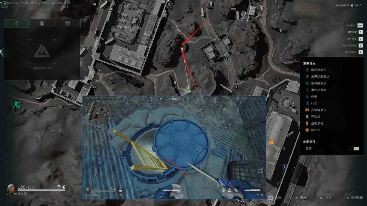 在标点位置打开井盖跳下去