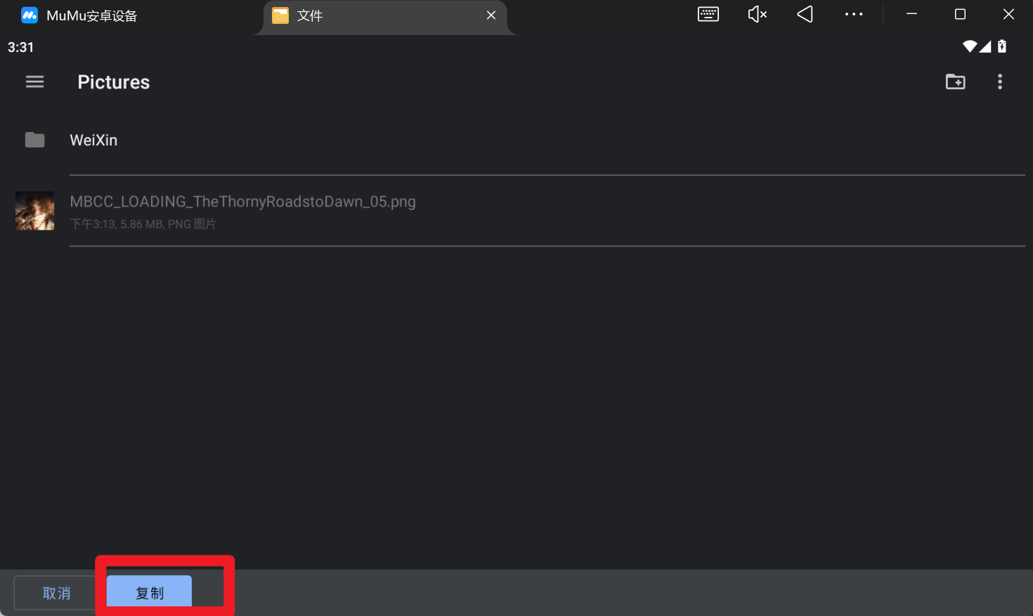 首先根据以下步骤打开mumu共享文件夹,查看文件”Pictures“和”Download“有没有无期相关的图片。如果没有,就可以按照后续步骤操作了。