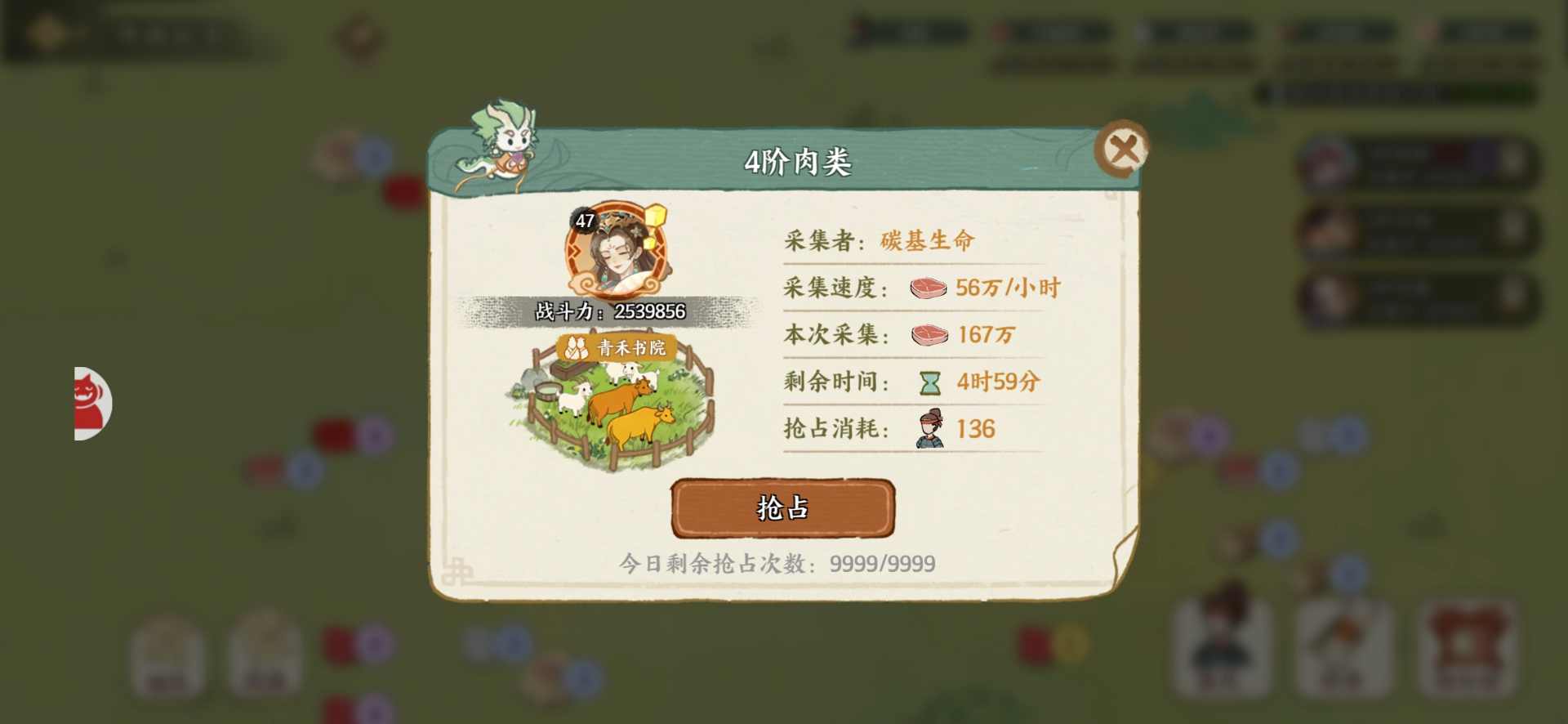 2.抢夺他人资源,61兵抢夺一次,可以打断对方的采集并且获得敌方已采集的50%资源。外围抢夺一次需要消耗244万资源,抢四级地也并不划算,第二周开放的五级地抢夺代价更大,4级5级地都需要136兵抢夺,十分不划算。有需要抢榜的玩家可以用小号占领外围4级资源,然后大号抢夺,极限可以损耗244万资源获得224万积分。是目前最优的选择。