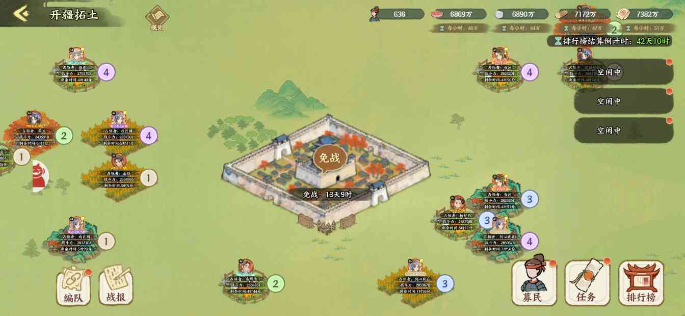 「开疆扩土」是玩家在40级并且进入周朝中后期开启的一个赛季制弱slg玩法,玩家可以在大地图抢占资源和绘院攻城。