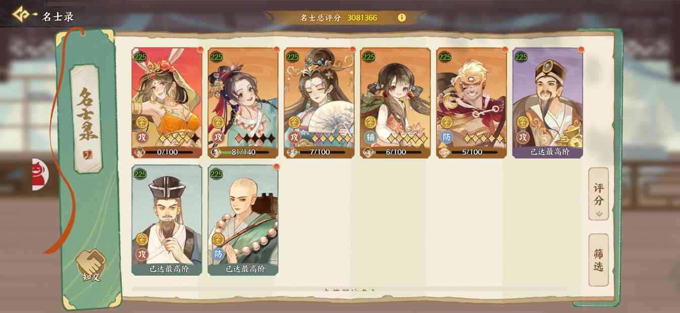火系:火系我没有玩过,但是我们区的火系大佬都弃坑了,感觉需要加强,火系只有卫子夫比较强,桑弘羊技能不错可惜数值低。炎帝>卫子夫>妇好=戚继光>伊尹。