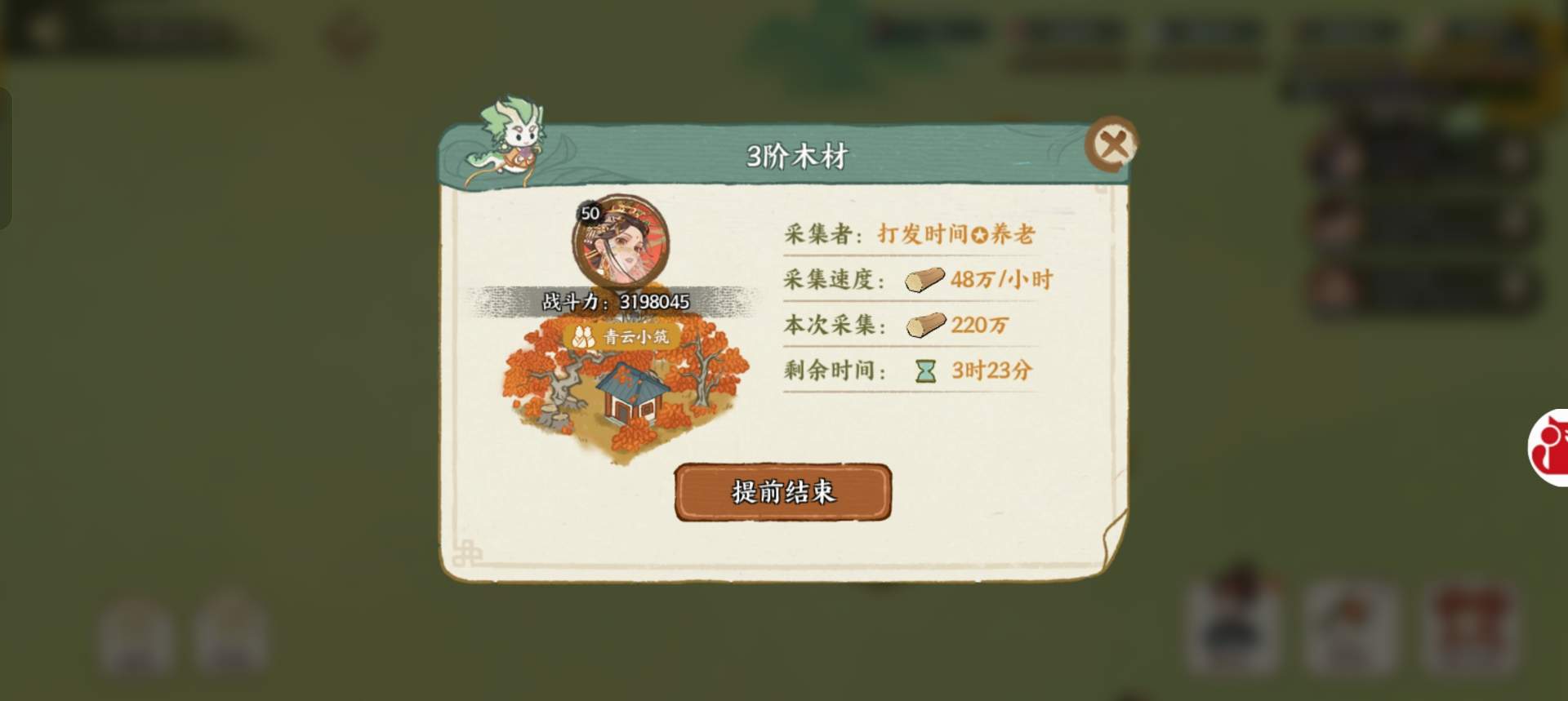 和龟甲采集一样,不要提前收取,损失太多了,只要不被抢还是采集完了合算