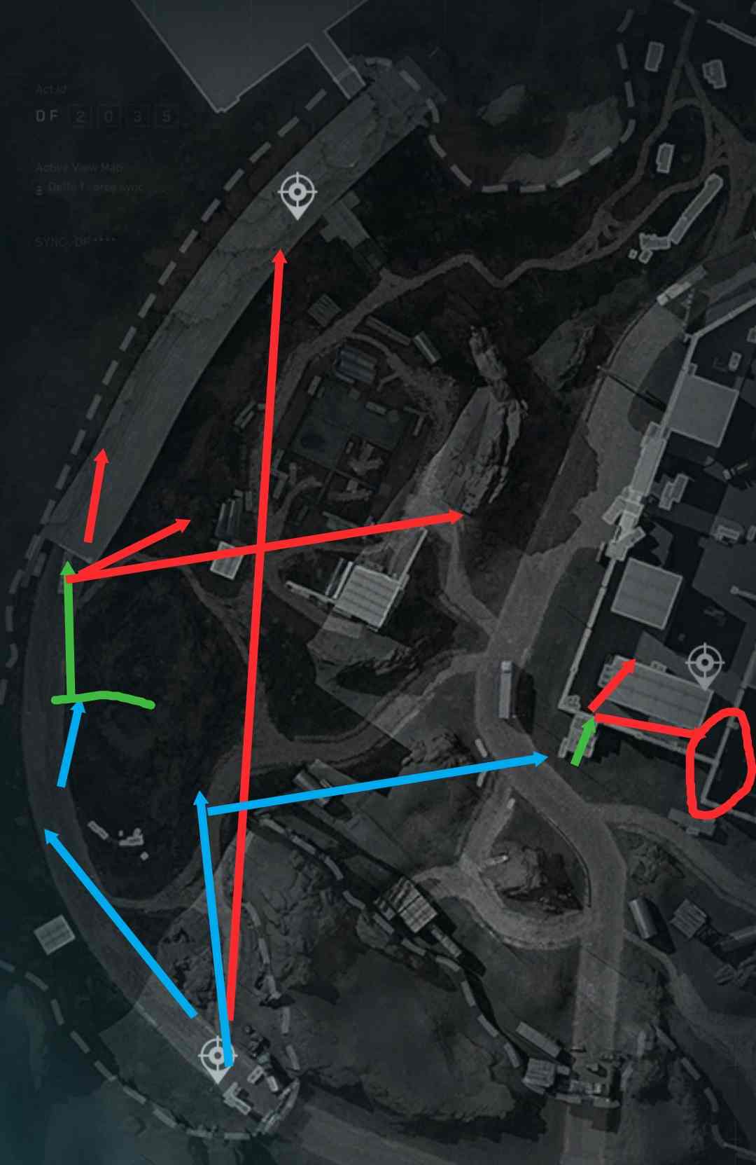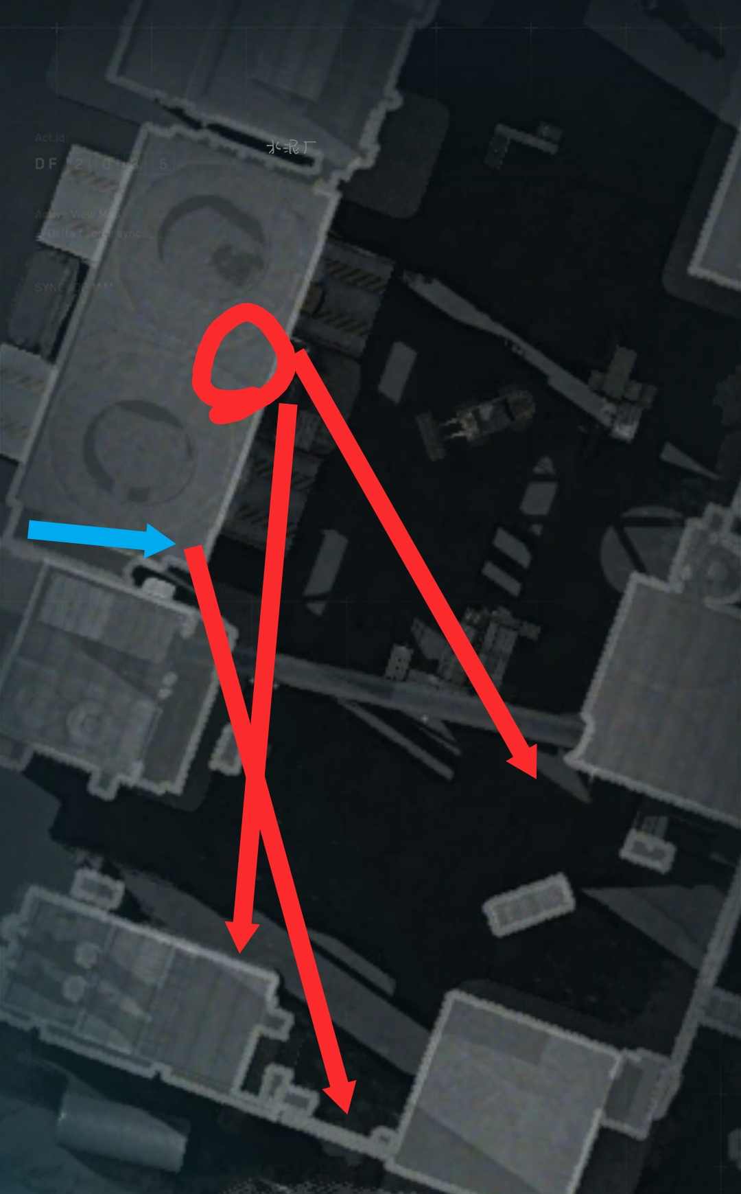 完后进水泥厂,进后推荐图中位置架管道进点的同时观察一号位是否贪吃武器箱。