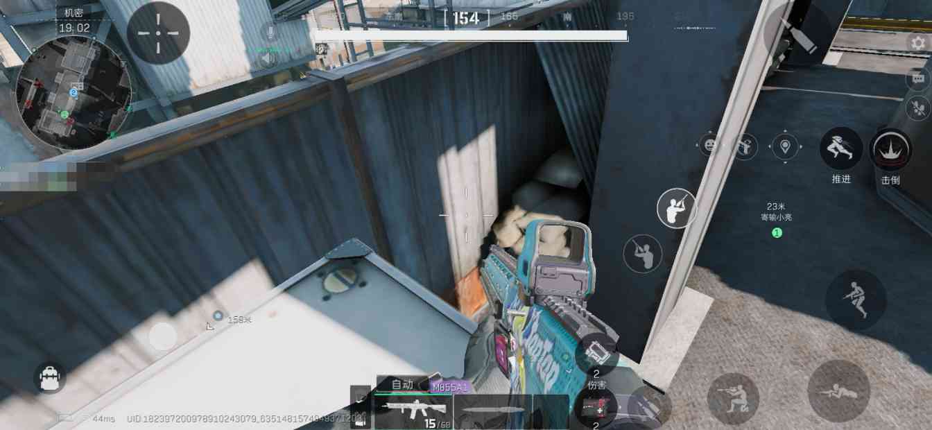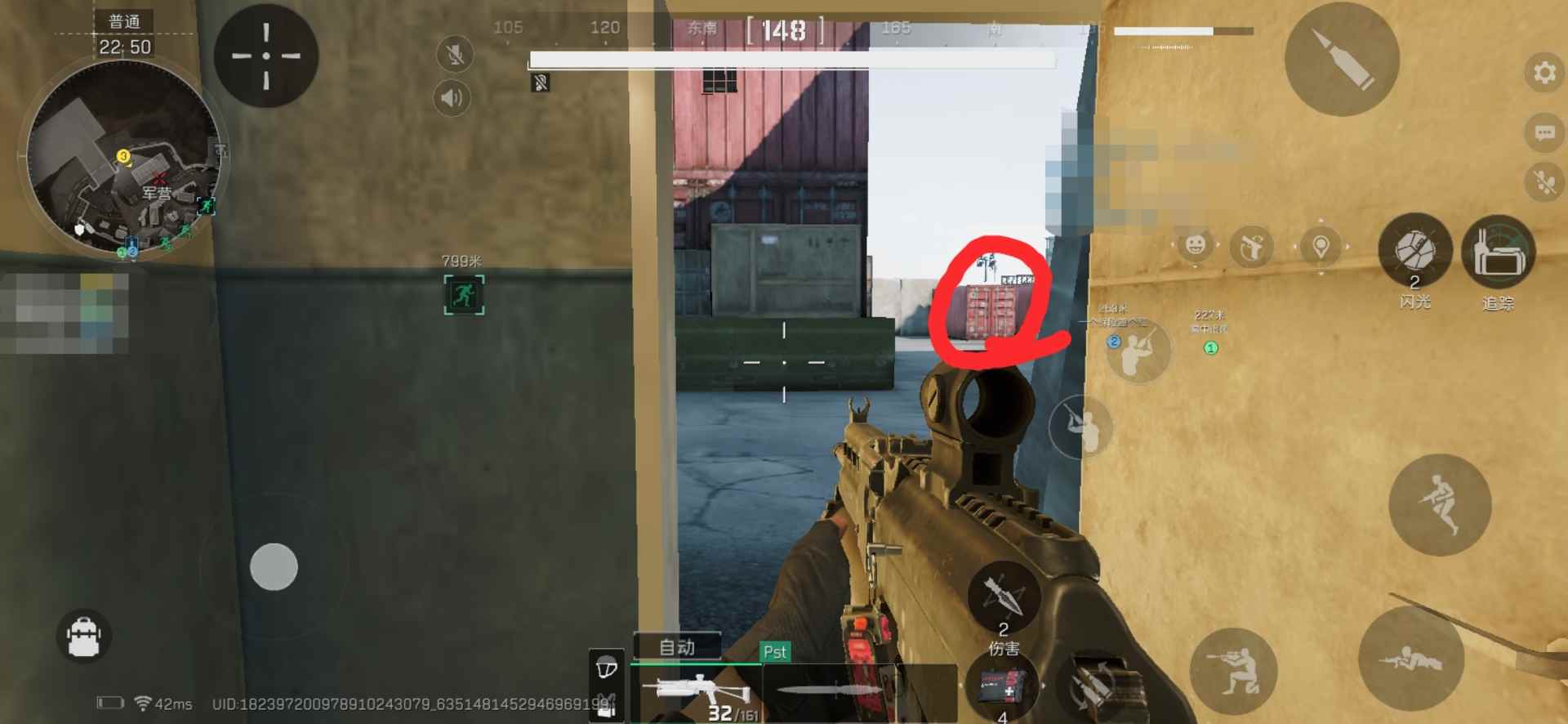摸到集装箱房一半可以静步走路过去直架下方翻墙上来的玩家。