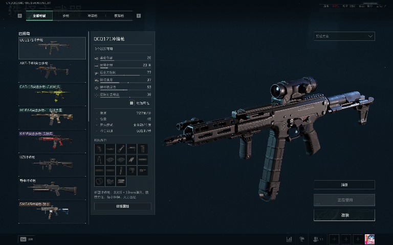 手感与总结:QCQ171冲锋枪,射速快(727发/分),能在短时间内倾泻大量子弹;后坐力控制数值较高(77),弹道相对集中可控。手感上,射击节奏迅猛,弹匣容量(45)提供持续火力输出保障,操控中能感受到其火力猛、易上手,适合近战刚枪等追求快速压制的玩家;但优势射程仅23米,远距离作战乏力,不适合偏好远程精确打击的玩家。整体是一把近战凶悍、便携且火力强劲的冲锋枪。