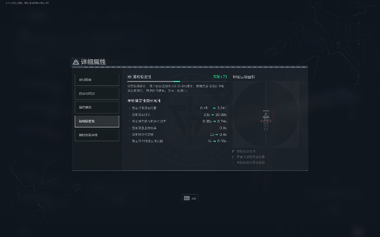 稳定性:据枪稳定性数值从基础值提升到 53(+7)。稳定性越高,使用武器连续开火时的抖动越小;使用武器瞄准时呼吸晃动更稳定、屏息时间更长,受击上抬更小。