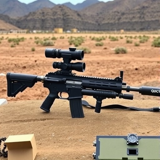 外观方面: 这把QCQ171冲锋枪以黑色为主色调,整体造型紧凑而现代。枪身上配备了多种战术配件,包括一个安装在顶部的瞄准镜,方便精确瞄准目标。枪管部分有镂空设计,不仅减轻了重量,还可能有助于散热。枪托设计符合人体工程学,握把部分也显得较为舒适,便于操控。整体外观展现出一种专业且极具战斗气息的风格,各部件的布局合理,体现了现代枪械设计的实用性与美观性的结合。