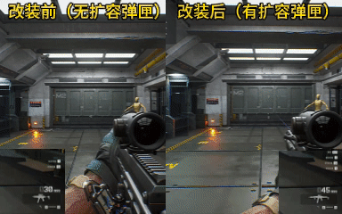 从图中可以看出,经过改装的,开镜后坐力可以几乎到一个点上去,这将大大提高我们在全面战场的战斗力!