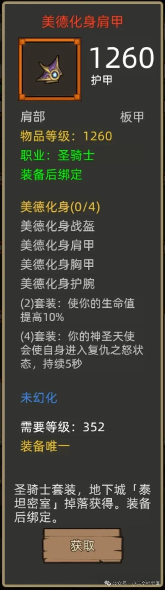 所以现版本毕业思路就是美德化身两件套+恐怖船长/先祖卫士两件套双拼,只要生命值提升。当然也可以直接带恐怖船长四件套,后续切惩戒骑也方便。