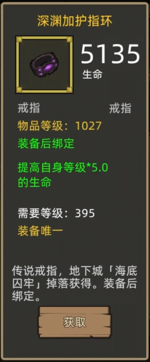 戒指毕业推荐双生命值,直接带面板最高的深渊加护指环+复生指环,这也是33专精里面少有的双生命搭配。